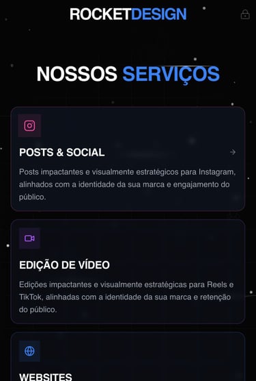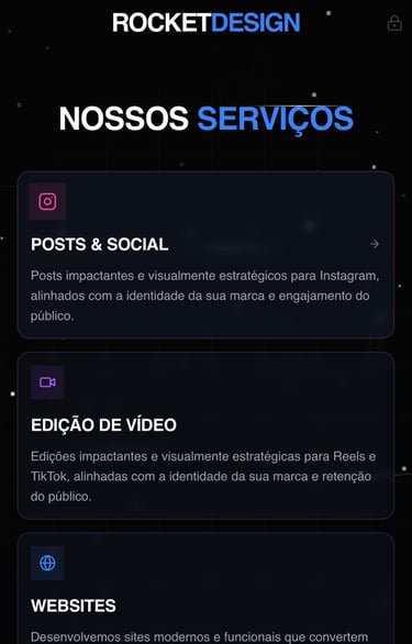 Sócio da Rocket Design, desenvolvo sites e landing pages focados em clareza, usabilidade e conversão. Meu objetivo é transformar visitantes em clientes reais